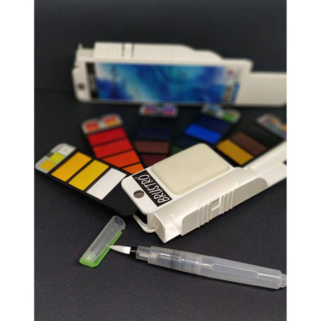 Brustro Artists’ Watercolour Pan will change the way you paint with watercolour and give you new possibilities to carry your watercolour set with you wherever you go. This unique foldable design of 25/42 colours allows for easy transportation and will make your field trips more enjoyable. Not only do all sets include colour cards and an integrated watercolour mixing palette, but we’ll also give you one Brustro Aqua Squeeze brush pen. Colours are fade-proof, pigment rich and easy to blend to create an endless range of colours to satisfy both the beginner and seasoned artist. Try these sets once and you’ll never go back to a traditional set again, especially if you enjoy plain air painting or want to take your watercolours with you when travelling. Once the trays are empty, refill with watercolour tubes and re-use.